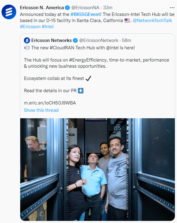 Ericsson, Intel Form 5G Cloud RAN Tech Hub